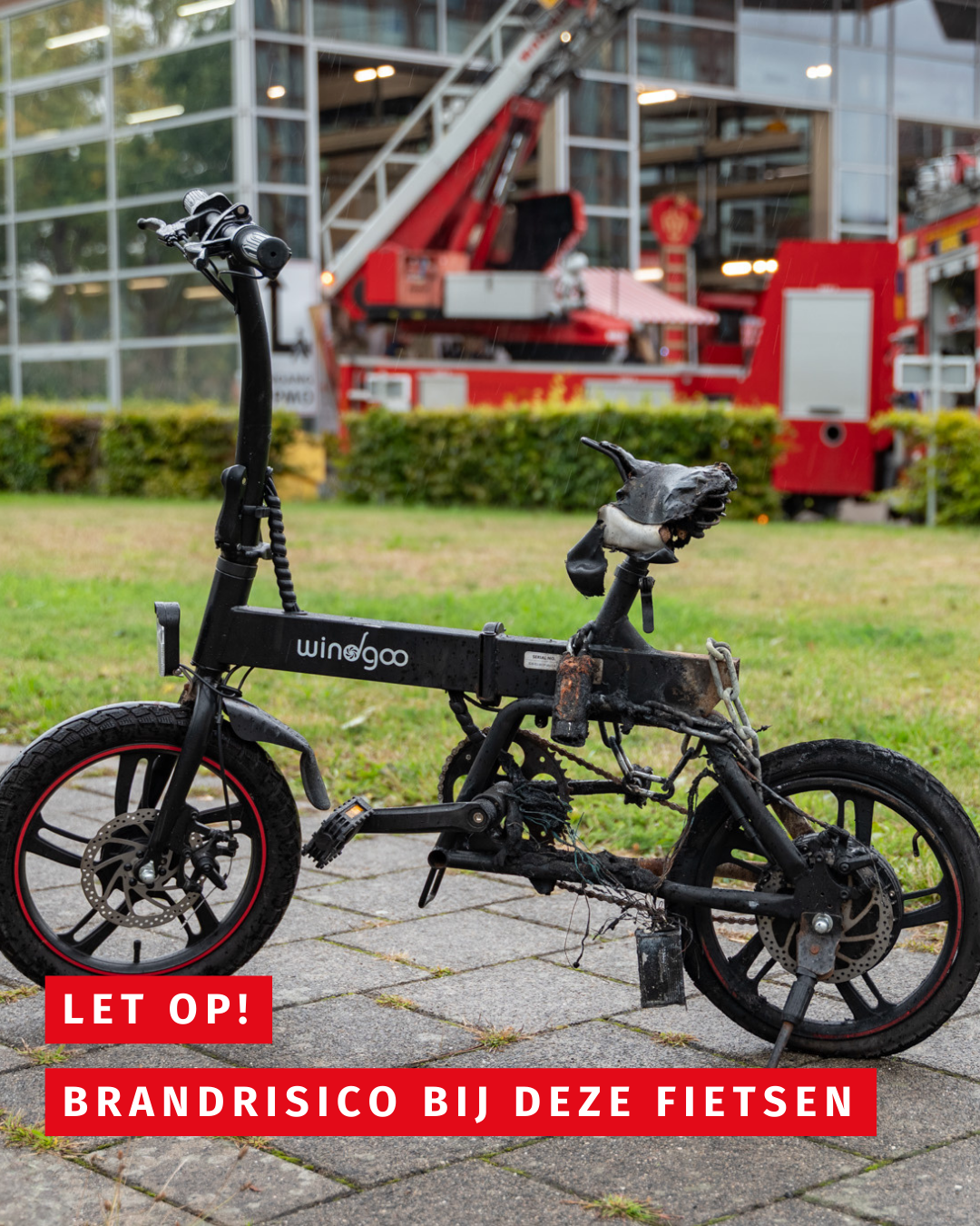 Elektrische fietsen (e-bikes) zijn niet meer weg te denken uit het straatbeeld. Maar het gebruik van een e-bike brengt ook risico’s met zich mee. Vooral de accu kan gevaarlijk zijn. De afgelopen maanden zijn in Gelderland en Overijssel meerdere vouwfietsen van het merk Windgoo (type B20) in brand geraakt. De brandweer waarschuwde hier eerder al voor. Daarna startte de fabrikant een terugroepactie.
